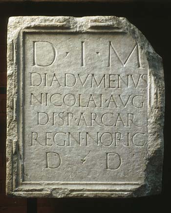 - D(eo) i(nvicto) M(ithrae) / Diadumenus / Nicolai Aug(usti) / disp(ensatoris) arcar(ius) / regn(i) Noric(i) / d(onum) d(edit)