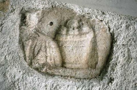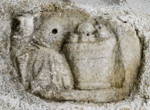 - Jahreszeit: in Bogennische Büste in Tunica, rechts daneben großer Korb mit Früchten. Akroter eines Sarkophagdeckels.