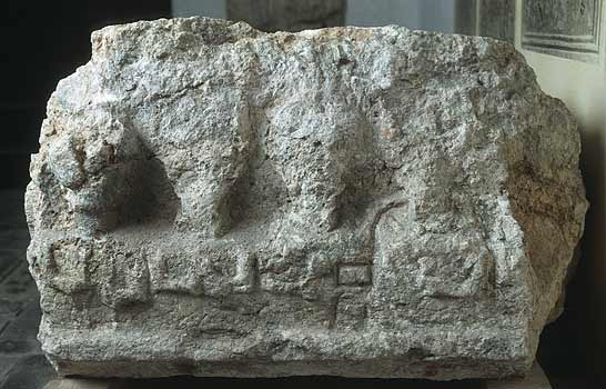5896 Aschenkistendeckel mit Grabrelief einer Familie