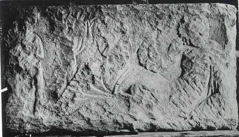 Auf der linken Nebenseite Reliefreste (Hinterbeine eines Pferdes ?).
