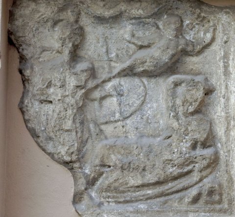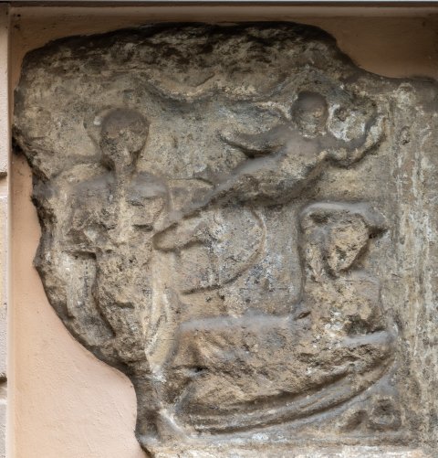 - stark verwittert und bestoßen, links tlw. abgebr.