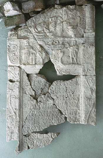 - Sept(imio) Va[le]nti veter(ano) / ex vexi[ll]ario coh(ortis) / |(miliariae) n(ovae) S(everianae) qui vixit ann(os) / LXX et Sept(imiae) S<at>urnina(e) / qui(!) vixit ann(os) XL et / Sept(imiae) Constan[t]ina(e) / vivae co[niugi ---] / et Sept(imio) Sil[---] / coh(ortis) viv[o ---] / [---