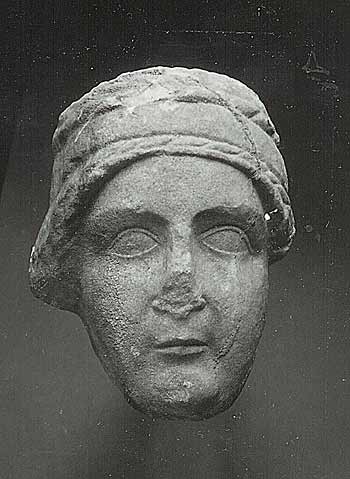 - Kopf einer einheimischen Frau mit aufgesteckter Zopffrisur. Teil eines Reliefs ?