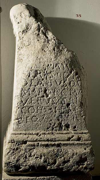 - [I(ovi) O(timo) M(aximo) Iunoni / Reginae Mi/nervae Sera/p]idi Isid[i ce/t]eris di[is] / deabusqu[e] / M(arcus) Porciu[s] / Verus trib(unus) / coh(ortis) (milliariae) Hemes(enorum) / eq(uitatae) c(ivium) R(omanorum)