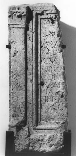 - [D(is) M(anibus)] ?/ Aur(eli-) [---] / PAA[---] / matr[i? ---] / frat[ri --- ux?]/sor vi[va? ---] / coniu[----]/us AR[----]/RIA IS[----] / SIRI et +[----] / et con[----] / [------]