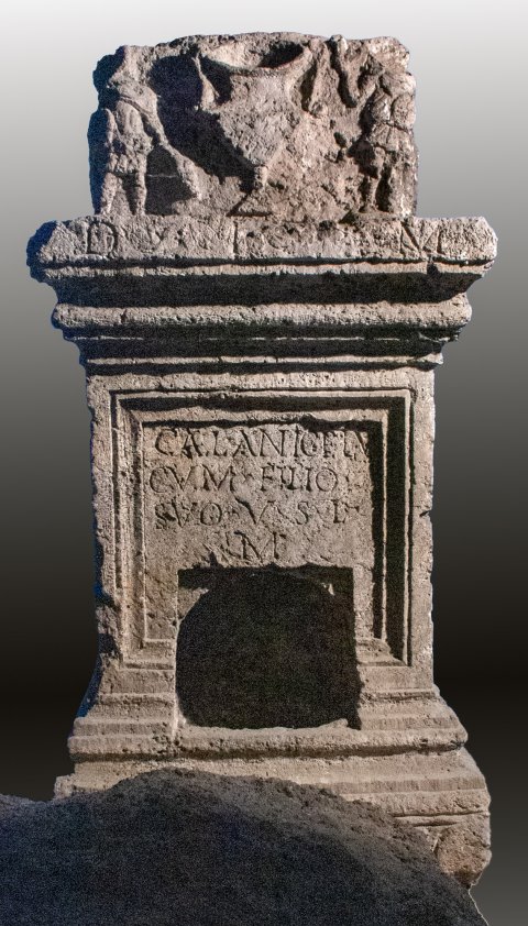 - D(eo) i(nvicto) M(ithrae) // C(aius) Ael(ius) Anicetus / cum filio / suo v(otum) s(olvit) l(ibens) / m(erito)