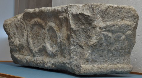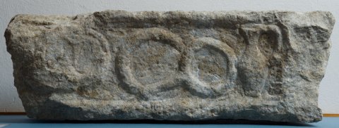 - links abgebr., stark verwittert