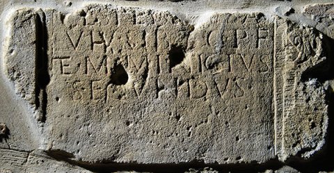 - ---] / CL(?)STER[---]SA / viv(us) sib(i) ac(?) P(ubli?) f(ilio?) / et M(arcus) Minicius / Secundus