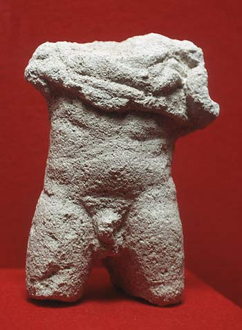 - Mythische Figur (Satyr): nackte Figur in leichter Schrittstellung, Umhang (Tierfell - Nebris ?) um die Schultern.