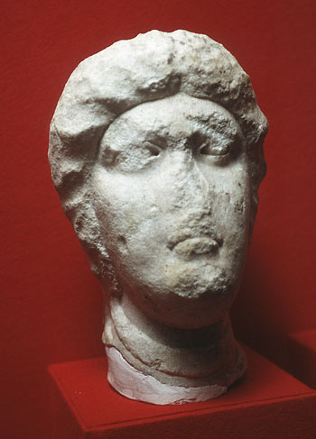 - Porträtkopf einer Frau mit Frisur der Faustina Minor (?), um den Hals glatter Reif.