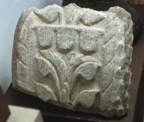 - Auf der Vorderseite Rest eines Blattkranzes, auf der Schmalseite Pflanzenornament (Blattkandelaber) zwischen tordierten Leisten.
