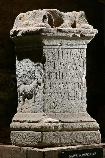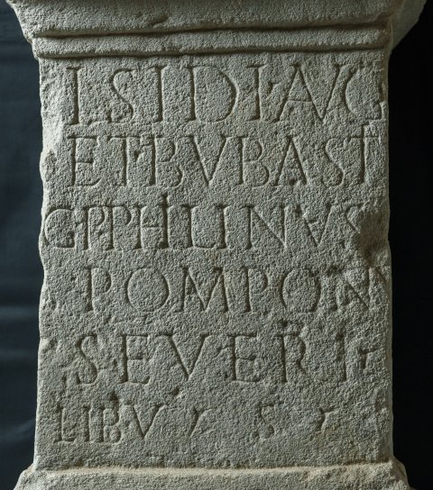 - Isidi Aug(ustae) et Bubasti / G(aius) P(omponius) Philinus / Pomponi / Severi / lib(ertus) v(otum) s(olvit)
