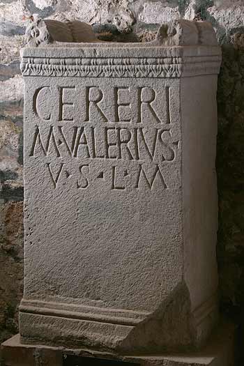 - Cereri / M(arcus) Valerius / v(otum) s(olvit) l(ibens) m(erito)