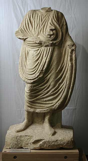 - stehender Togatus, auf der Rückseite niedrige Stütze