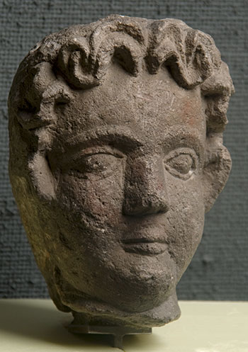 - Mythische Figur (Gott ?) : bartloser Kopf mit lockigem kurzen Haar.