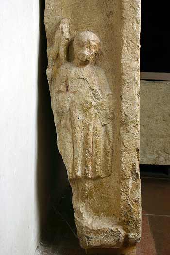 Auf der linken Nebenseite in Rechtecknische rechts stehender Knabe in kurzer Tunica, neben ihm Rest eines Erwachsenen.