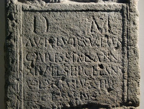 - D(is) M(anibus) / Aurel(iae) Ursul(ae) con(iugi) / carissimae ann(orum) / XLVI L(ucius) Sep(timius) Celsinus / v(eteranus) l(egionis) X g(eminae) vi(v)us sibi / et suis / fecit
