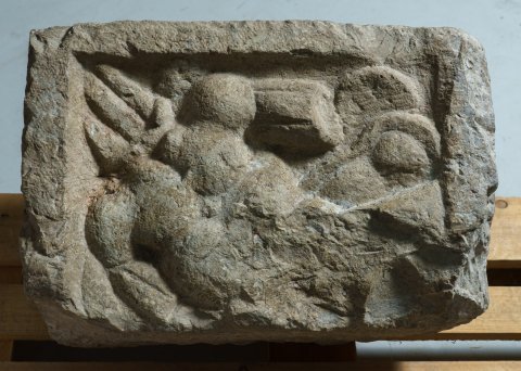 - links und hinten abgebr., andere Seiten geglättet, Relief stark verwittert
