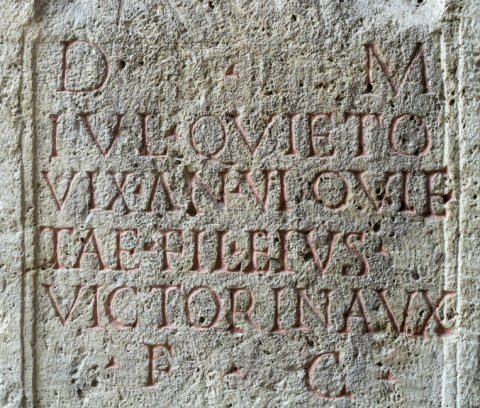 - D(is) M(anibus) / Iul(io) Quieto / vix(it) an(nos) LI Quie/tae fil(iae) eius / Victorina ux(or) f(aciendum) c(uravit)