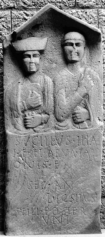 - Segillus Ilia[t]/i f(ilius) et Abua Tap[p]/onis f(ilia) / Seg(illus) an(norum) / L (h)ic situs / es[t] fili(i) pos<u=I>er/unt