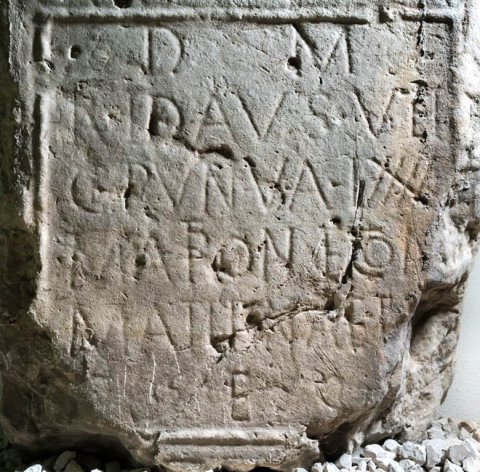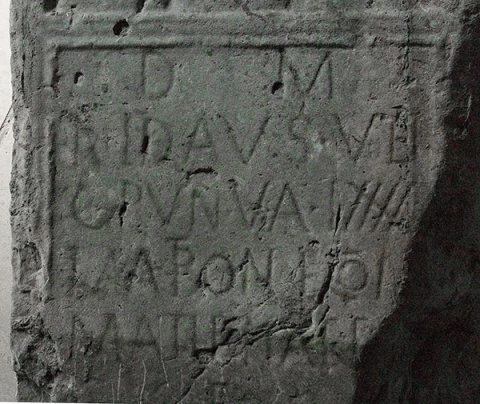 - D(is) M(anibus) / Ridaus vet(eranus) / co(ho)r(tis) V(i)n(delicorum) v(ixit) a(nnos) LXXXX / Matron(a)e con(iugi) / Matid(i)nae f[il(iae)]? / [h(ic)] e(st) [s(itus)]