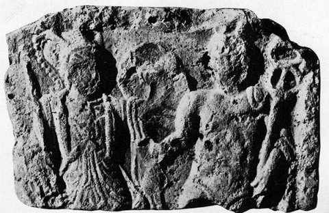 - links abgebr., unten abgearbeitet, stark bestoßen
