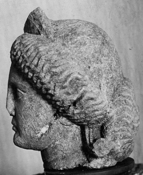 - Frauenkopf (Göttin ? Kaiserin Faustina minor?) : Haar um Stirn und Schläfen gleichmäßig gesträhnt und wulstarig gebauscht, im Nacken Knoten. Rest eines glatten Diadems.