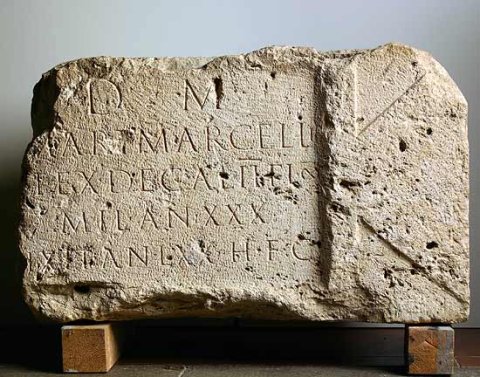 - D(is) M(anibus) / [-] Mari Marcelli / [ve]t(erani) ex dec(urione) al(ae) II Fl(aviae) (miliariae) / mil(itavit) an(nos) XXX / [v]ixit an(nos) LXX h(eres) f(aciendum) c(uravit)