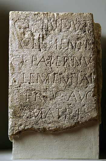 - Cl(audiae) Indut[i fil(iae)] / Clementi[nae] / Cl(audius) Paternu[s] / Clementian[us] / proc(urator) Aug(usti) / matri