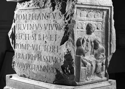 - Pompeianius / Silvinus vivus / fecit sibi et / Pomp(eianio) Victori / fratri piissimo / qui vixit annis XXX