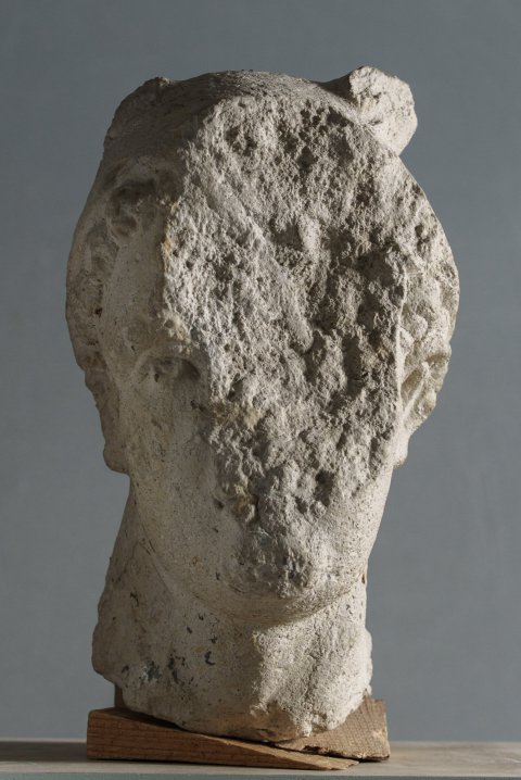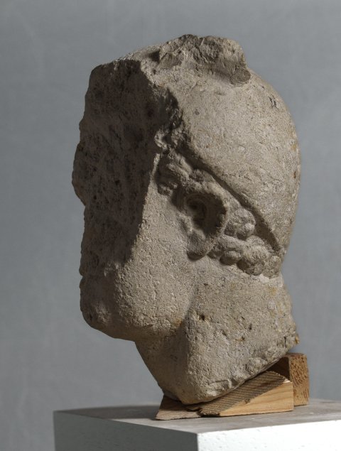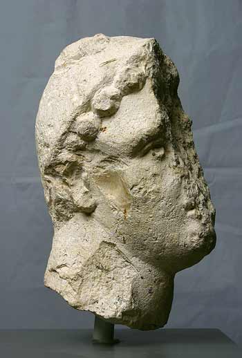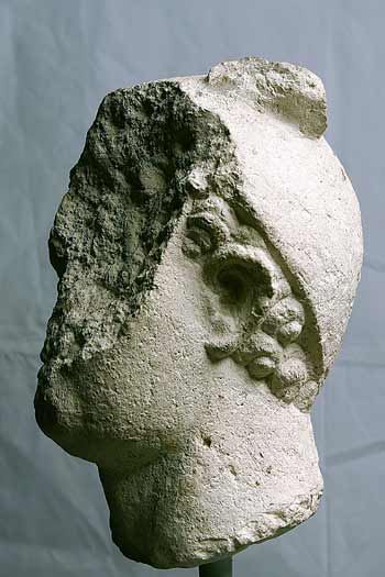 - Mythische Figur (Mercur) : nach rechts gedrehter Kopf mit Buckellocken und Flügelhut (Petasos).