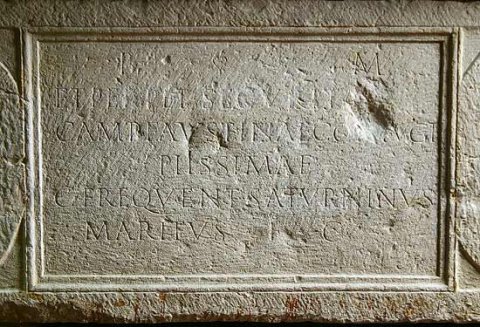 - [[D(is) M(anibus)]] / [[et perpet(uae) securit(ati)]] / Camp(inae?) Faustinae coniugi / piissimae / C(aius) Frequent(ius) Saturninus / maritus f(aciendum) c(uravit)