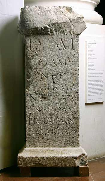 - D(is) M(anibus) / L(uciae) Maxi/nae / Cl(audius) Germa/nus frum(entarius) / nepos / et Cl(audius) Roman(us) / maritus