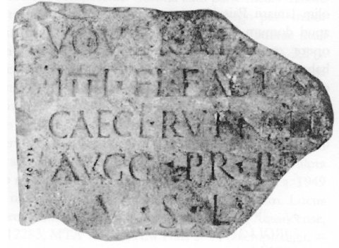 - ---] / quod [---] / voverat A[---] / IIII Fl(aviae) factus |(centurio) [sub] / Caecil(io) Rufino leg(ato) / Augg(ustorum) pr(o) pr(aetore) [P(annoniae) i(nferioris)] / v(otum) s(olvit) l(ibens) m(erito)