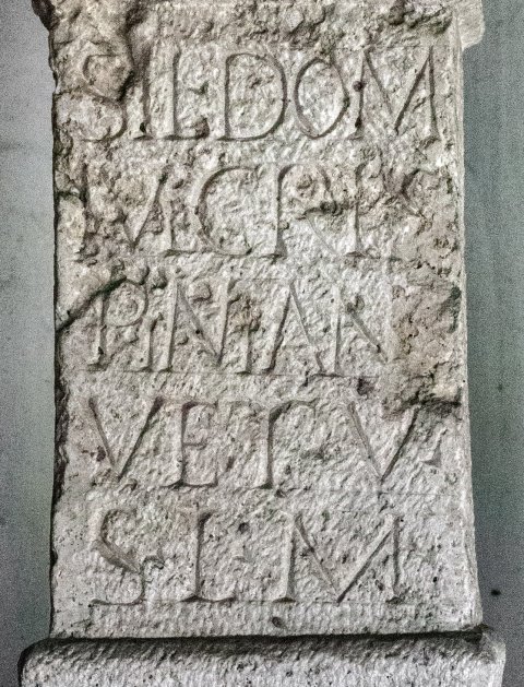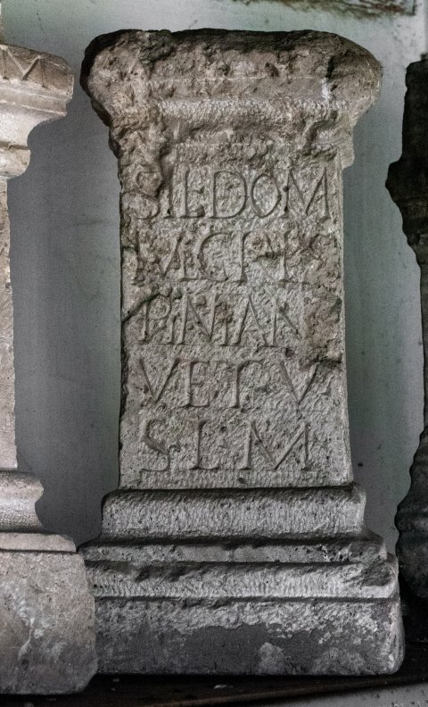 - Sil(vano) dom(estico) / Iul(ius) Cris/pinian(us) vet(eranus) v(otum) / s(olvit) l(ibens) m(erito)