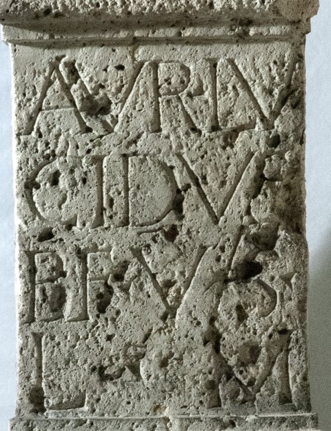 - I(ovi) O(ptimo Maximo) / Aur(elius) / Lu/cidus / b(ene)f(iciarius) v(otum) s(olvit) / l(ibens) m(erito)