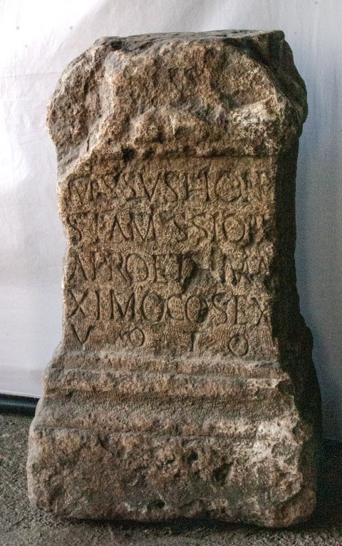 - ---] // missus hone/sta missione / Apro et Ma/ximo co(n)s(ulibus) ex / voto