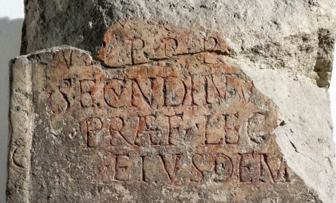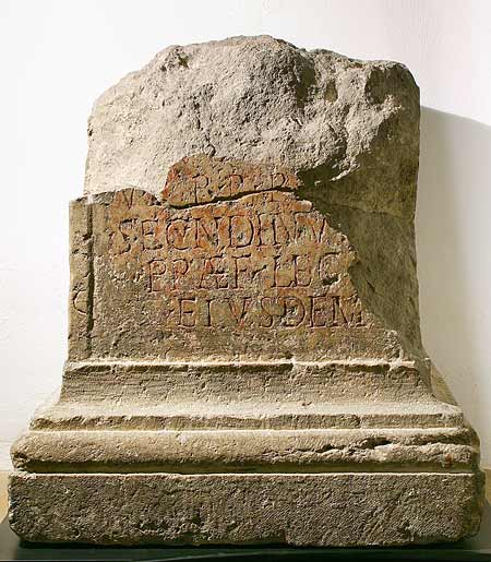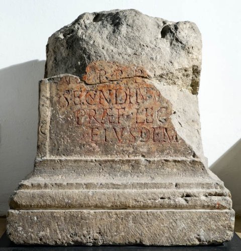 - --- ] / v(ir) p(erfectissimus) p(raeses) / p(rovinciae) R(aetiae) / Secundinus / praef(ectus) legionis / eiusdem