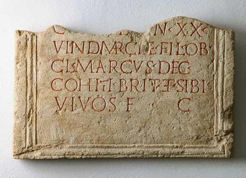 - ---] / con(iugi) vix(it) an(nos) XX / Vindmarciae fil(iae) ob(itae) / Cl(audius) Marcus dec(urio) / coh(ortis) III Brit(annorum) et sibi / vivos (!) f(aciendum) c(uravit)