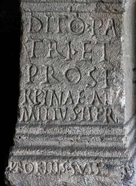 - V(otum) s(olvit) l(ibens) m(erito) // Dito Pa/tri et / Prose/rpinae Ae/milius Herm(es) // pro fili(i)s suis