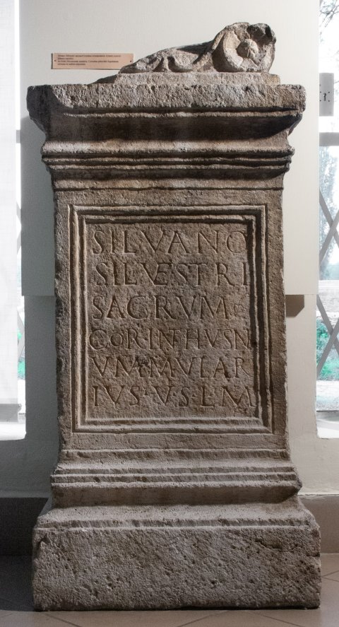 - Silvano / Silvestri / sacrum / Corinthus n/ummular/ius v(otum) s(olvit) l(ibens) m(erito)