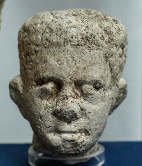 - Mythische Figur : bartloser Jünglingskopf mit kurzen Locken (Mercur ?).