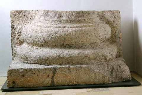 - Plinthe und profilierte Basis (Kehle zwischen zwei Wülsten) in einem Stück mit einem Wandblock gearbeitet.