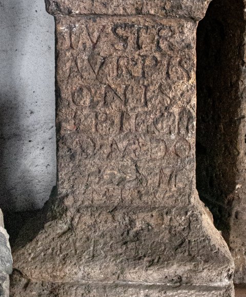 - I(ovi) O(ptimo) M(aximo) // lustro / Aur(eli) Pis/onis p(rimi) p(ili) leg(ionis) II / ad(iutricis) Aur(elii?) Do/natus m(i)l(es) (?) / e(t)? Mercuri/[alis?] / Severo et Quint(iano) / co(n)s(ulibus)