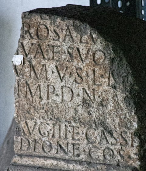 - ---] / et L?[---] / [p]ro salu[te] / sua et suo[r]/um v(otum) s(olvit) l(ibens) m(erito) / Imp(eratore) D(omino) n(ostro) [[Sev]] / [[ero Alexandro]] / Aug(usto) III et Cassi(o) / Dione co(n)s(ulibus)