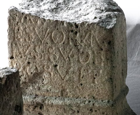 - ---] / [--- pro] / [s]alute su[a] / et suorum / iussu dei / posuit
