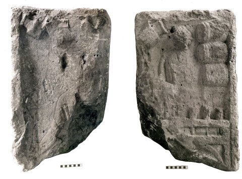 - Reliefs stark besch., Darstellung setzte sich unten auf einem weiteren Block fort