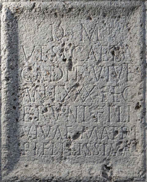 - D(is) M(anibus) / Vesecae Ba/cadi f(iliae) viv(a)e) / an(norum) LXXX fec/erunt fili(i) / vivae matri / pientissimae