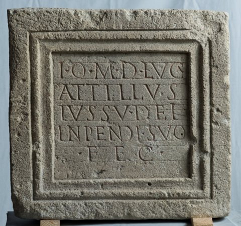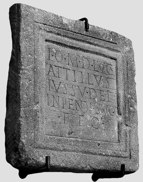 - I(ovi) o(ptimo) m(aximo) D(olicheno) Luca(nius) / Attillus / iussu dei / inpendi(o) suo / fec(it)
