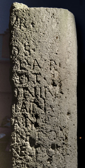 - [Imp(erator) Caes(ar) M(arcus) A]ur(elius) / [Antoninus Aug(ustus)] / t[rib(unicia) pot(estate) XV c]o(n)s(ul) / [III et Imp(erator) Caes(ar)] L(ucius) Aur(elius) / [Verus Aug(ustus) trib(unicia)] pot(estate) / [co(n)s(ul) II divi Ant]onini / f[ili(i) divi Hadr]iani / [nepotes divi Trai]ani / P[arthici pro]nepo(te)s / d[ivi Nervae ab]nepotes / [a K(arnunto) m(ille) p(assus)]